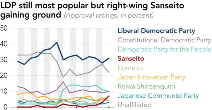 “Sanseito emerged as one of the biggest winners of Japan's election, walking away with 14 seats. The party was born in 2020 during the Covid-19 pandemic, where it gained prominence with YouTube videos that spread conspiracy theories about vaccinations”