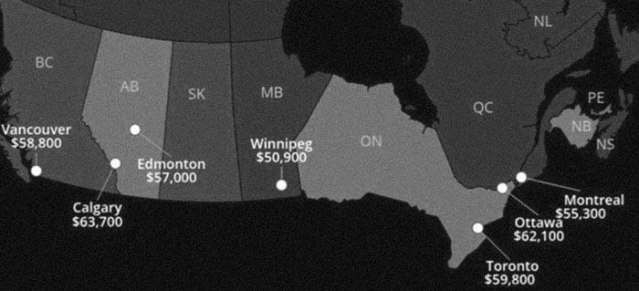 Instead of average wage earned, it would be interesting to see the median wages. I think it would show a more accurate, and distressing, portrayal of the financial situation of the majority of Canadians.