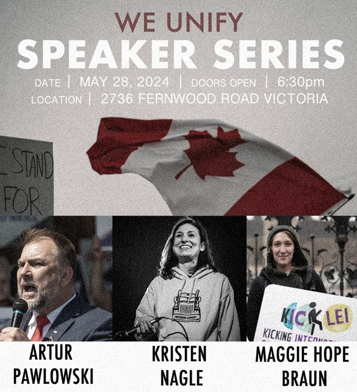 To discuss a new way forward, We Unify has invited 3 amazing speakers on May 28, 2024 who are here to inspire and equip you with information you’ll need to get started on this path of citizen-led change. Whether attending in person, or watching online afterwards, we sincerely appreciate you considering making a donation to support our programming. If you're close enough to attend in person, we thank you for registering in advance!